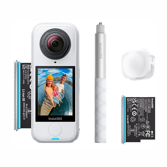 Sākuma komplektā ietilpst 1 x Insta360 X4 Air, 1 x papildu akumulators, 1 x 114 cm neredzama pašbilžu nūja un 1 x objektīva vāciņš.