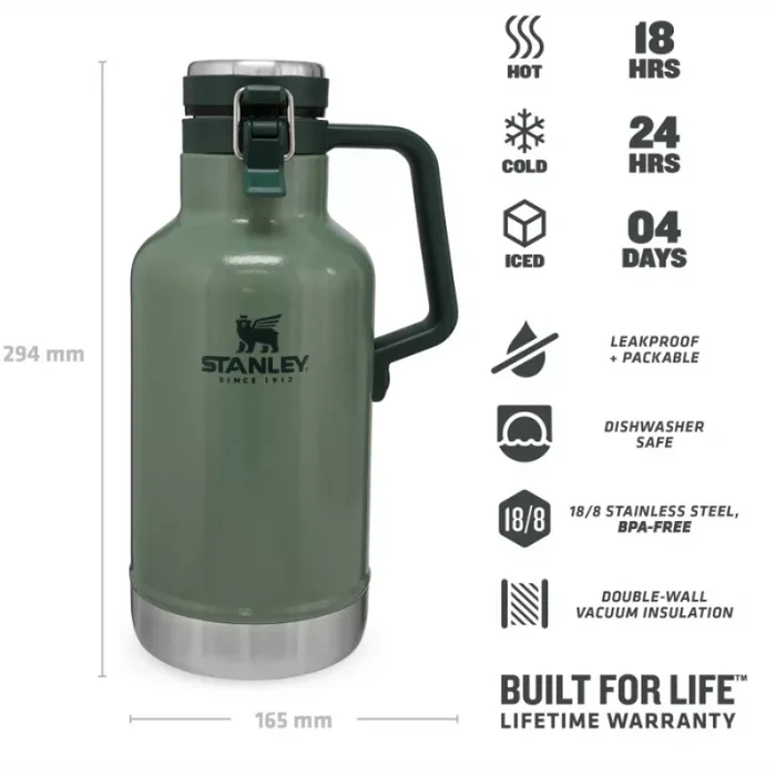 Dzērienu krūka Stanley Classic The Easy-Pour Growler 1.9l Hammertone Green