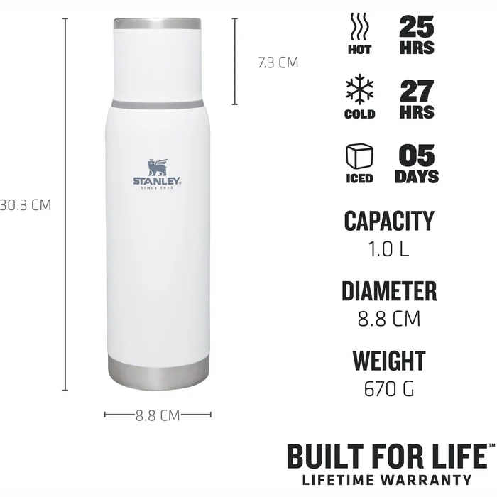 The Adventure To-Go Bottle termoss ir mūsdienīga dizaina un izturīgs veiktspējā. Izgatavots darba dienām, brīvdienām un ikdienai - šī nākamās paaudzes pudele ir vieglāka, plānāka un eleganti izstrādāta nekā jebkad iepriekš. Izolētais, nerūsējošais tērauda vāciņš var kalpot kā krūze ērtai dzēriena baudīšanai. Ievietojiet šo pudeli mugursomā, lai ceļā uz savu galamērķi baudītu karstu tēju, kafiju, atsvaidzinošu sulu vai ūdeni. Elegants un stilīgs siluets, kopā ar inovatīvu siltuma noturēšanas tehnoloģiju, padara šo par lielisku produktu.