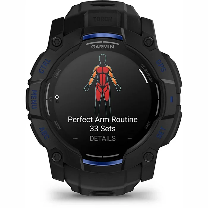 Viedpulkstenis Garmin Instinct 3 – 50 mm AMOLED Black with Black/Bolt Blue Band